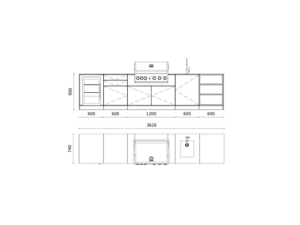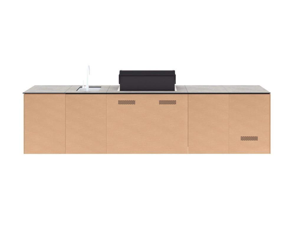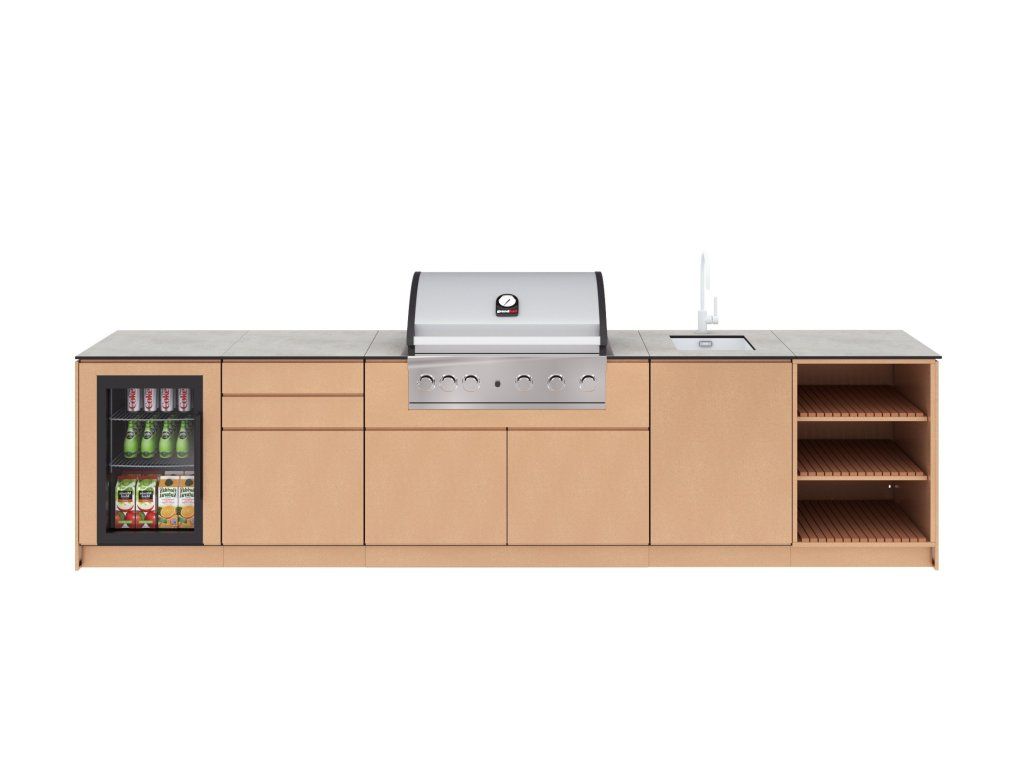 Priestor, ktorý sa prispôsobí vášmu tempu. Táto väčšia zostava ponúka dostatok pracovnej plochy na prípravu aj servírovanie jedál a vytvára komfortné zázemie pre každodenné varenie aj víkendové grilovanie.